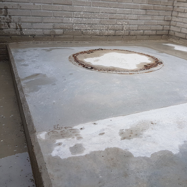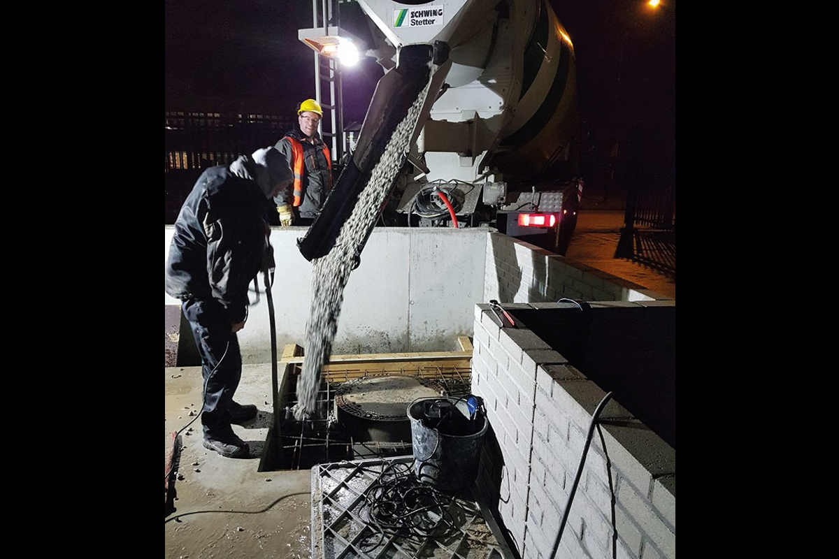 De helling van de put zou in theorie 1 cm zijn en zou dus worden gevlinderd. Maar de praktijk bleek anders. De put stond ongeveer 6 cm hoger als verwacht waardoor het vlinderen niet mogelijk was en het beton met de hand moest worden afgewerkt.