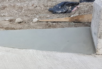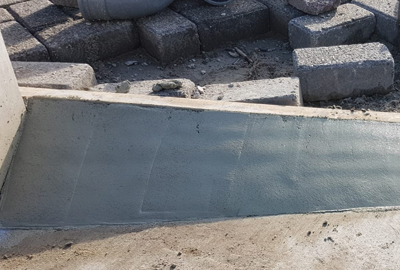 Een reparatie bij een laaddock waarbij een schuine hoek moest worden gecreëerd, zodat deze minder snel stuk gereden word.