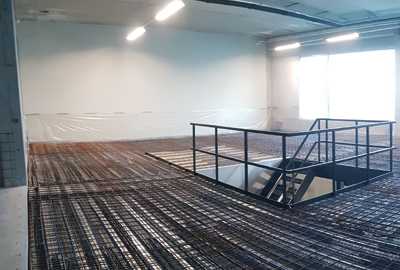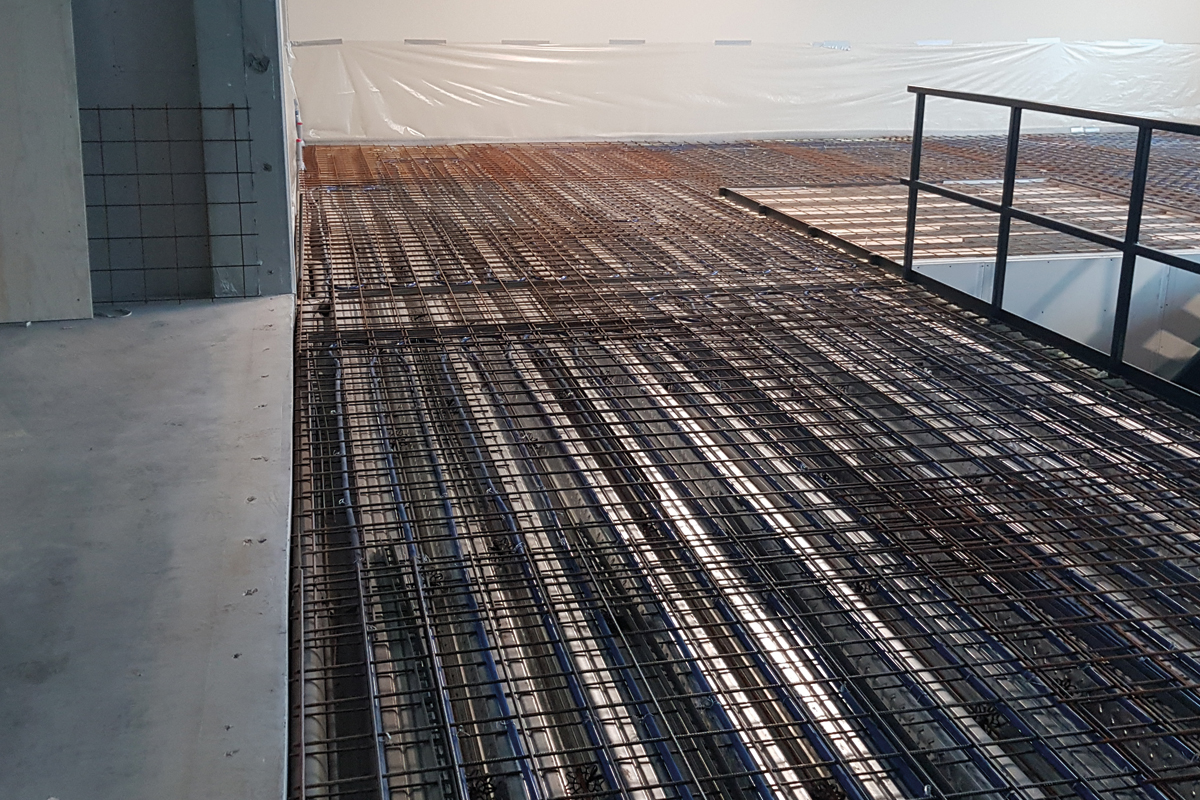 Voor een van onze vaste aannemers realiseerden wij de onderstempeling, wapening, en het storten en vlinderen van een verdiepingsvloer in een bedrijfshal te Lijnden. Voordat het werk kon beginnen, plaatsten we een onderstempeling die het gewicht van het beton moest opvangen. Zo'n onderstempeling is ook nodig om te voorkomen dat de vloer doorbuigt als we er tijdens het werk overheen lopen.